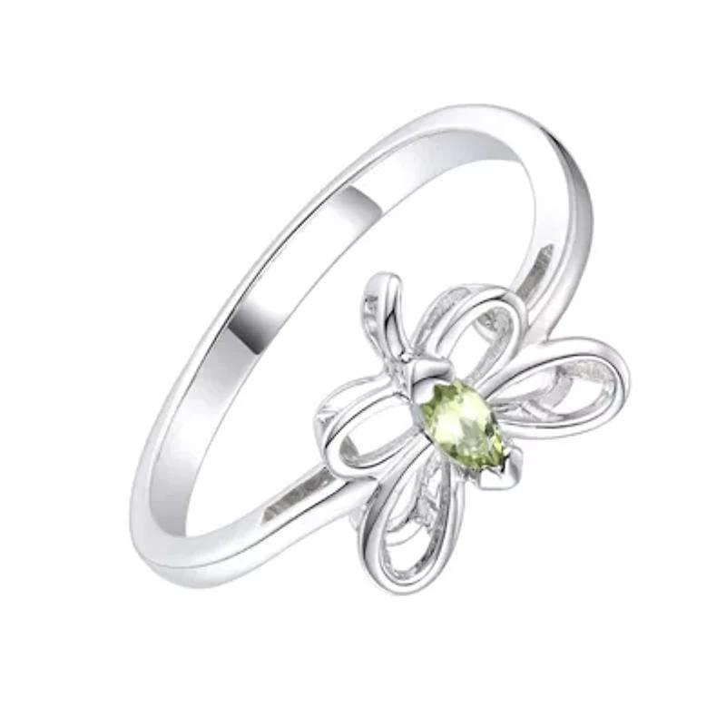 Lab Created Rozzato Sterling Silver White Gold Plated with Peridot Tourmaline Gemstone Butterfly Ring for Kids/Teens in Chattanooga, TN