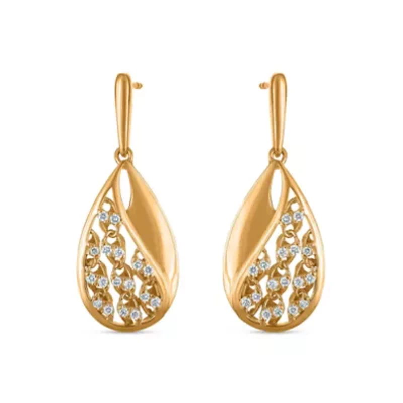 These lab grown bold gold 1/3 ct. t.w. dangle drop earrings, apart of our Eos Lumina collection, are a unique choice for the modern woman. Crafted in sterling silver, each earring features an elegant design that features a pattern of sparkling round lab grown diamonds, creating a dazzling interplay of light set in a paisley shaped frame. Perfect for complementing formal attire, these earrings will make a statement when you walk into the room. With their graceful style, they are an ideal addition to any woman’s jewelry collection, embodying beauty and elegance. Secured with a post and reliable friction backs for a more secure fit. Post back, 34 Color rating: G, H Clarity rating: SI2 Polished finish Prong setting India Imported Product Specifications 34.1-mm height x 13.5-mm width 0.33 ct. t.w. Material & Care Sterling Silver Metal, Sterling silver Use silver polishing cloth on silver items.