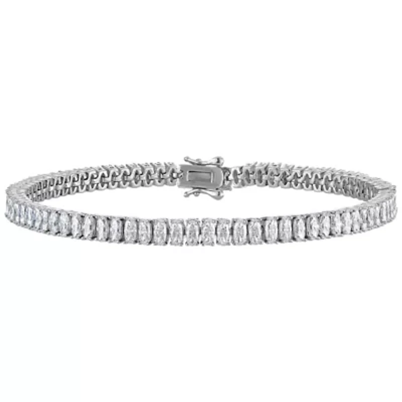 sterling silver moissanite tennis bracelet 80 Polished finish Prong setting CHINA Imported Product Specifications 16 Material & Care Sterling silver Clean with a soft cloth.