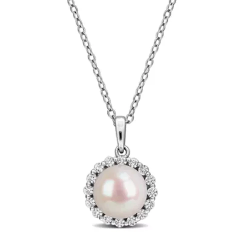 Lab Created White Sapphire & 8-8.5mm Freshwater Cultured Pearl Pendant With Chain in Sterling Silver,18"Lab Created White Sapphire & 8-8.5mm Freshwater Cultured Pearl Pendant With Chain in Sterling Silver,18"Lab Created White Sapphire & 8-8.5mm Freshwater Cultured Pearl Pendant With Chain in Sterling Silver,18"Lab Created White Sapphire & 8-8.5mm Freshwater Cultured Pearl Pendant With Chain in Sterling Silver,18"Lab Created White Sapphire & 8-8.5mm Freshwater Cultured Pearl Pendant With Chain in Sterling Silver,18"