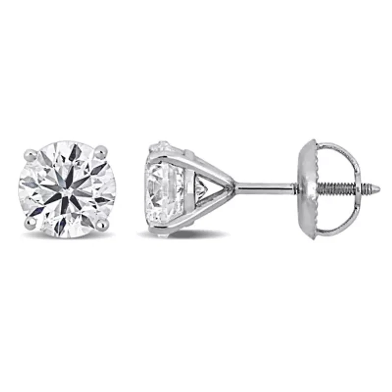 Elevate your elegance with these 14k white gold solitaire stud earrings, designed to captivate with every glance. Each lab-grown diamond shines brilliantly, catching light from every angle to create a radiant, eye-catching sparkle. The classic solitaire setting highlights the stone’s natural beauty while offering a sleek, timeless silhouette that complements any style. Perfect for both everyday wear and special occasions, these earrings are more than jewelry—they embody confidence, sophistication, and enduring beauty that lasts a lifetime. Screw back post earring, Jewelry clasp, 2 lab grown diamond Color rating: H, I Clarity rating: VS1-VS2 Polished finish Prong setting Warranty available, 60 days Canada Imported Product Specifications 6.2-mm width x 6.2-mm height 2 ct. t.w. lab grown diamond Material & Care 14K White Gold Metal, White gold Clean with a soft cloth.