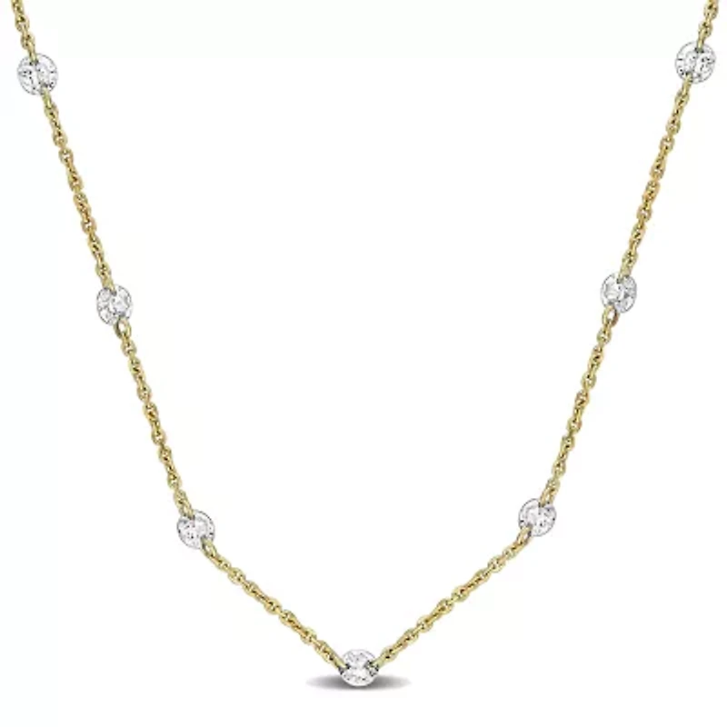 Bring subtle brilliance to any outfit with this 17-inch 14k yellow gold station necklace. Featuring lab-grown diamonds thoughtfully placed along a delicate chain, each stone catches the light beautifully, creating a soft, radiant shimmer. Its elegant, minimalist design blends timeless sophistication with modern charm, making it perfect for both everyday wear and special occasions. More than a necklace, it’s a symbol of grace, style, and enduring beauty—a piece that adds effortless elegance to every moment. Lobster closure, 7 lab grown diamond Color rating: H, G Clarity rating: VS1-VS2 Polished finish Warranty available, 60 days Thailand Imported Product Specifications 4-mm width, 17" 3/5 ct. t.w. lab grown diamond Material & Care 14K Yellow Gold Metal, Yellow Gold Clean with a soft cloth.