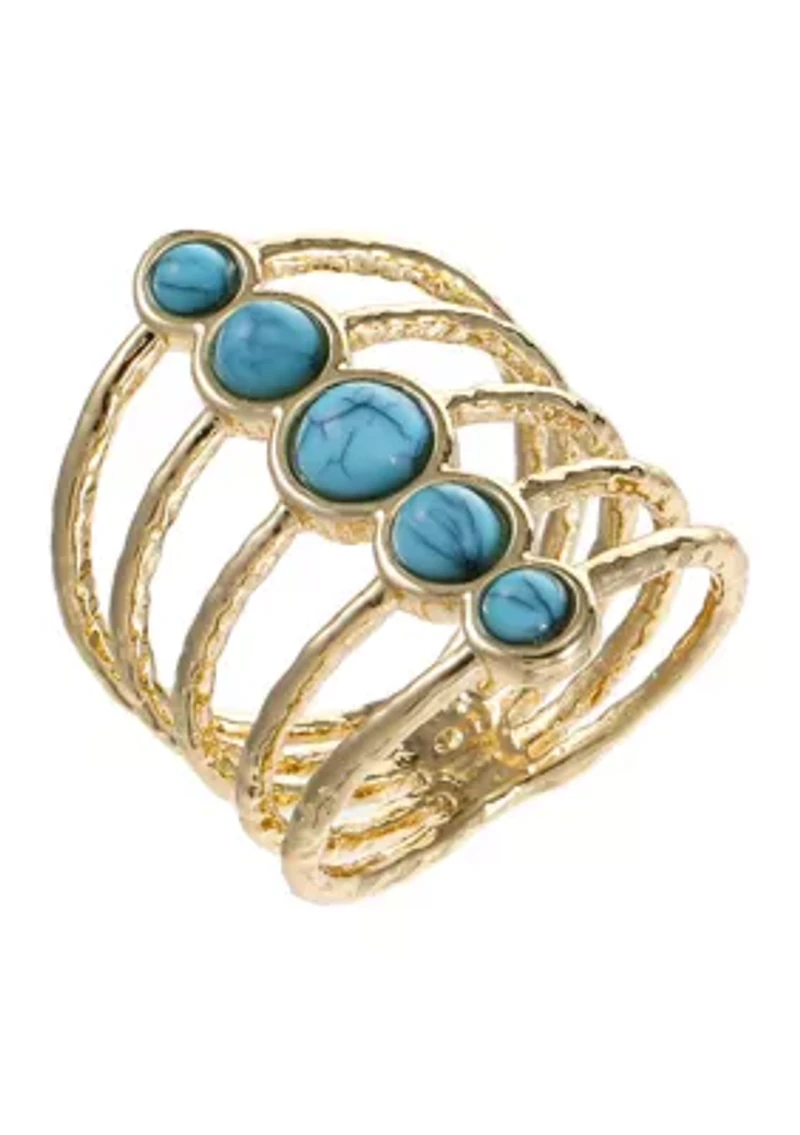 Lab Grown Gold Tone Multi Row Round Turquoise Open Ring
