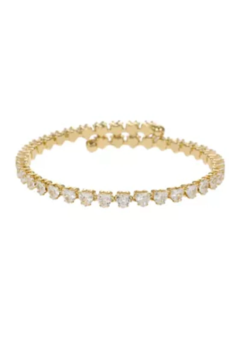 Glimmering heart-shaped crystals add to the elegant allure of this stunning tennis bracelet from Belk Sterling Silver. Slip-on Polished finish Imported Belk Exclusive Product Specifications 8" L Material & Care Gold-tone metal, silver-tone metal Clean with a soft cloth