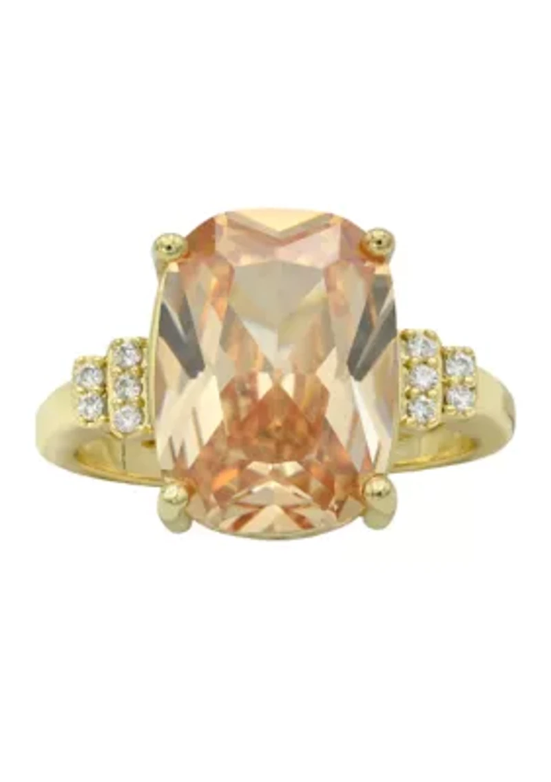 Lab Grown Jonquil Elongated Cushion Crystal with Cubic Zirconia Baguette Ring