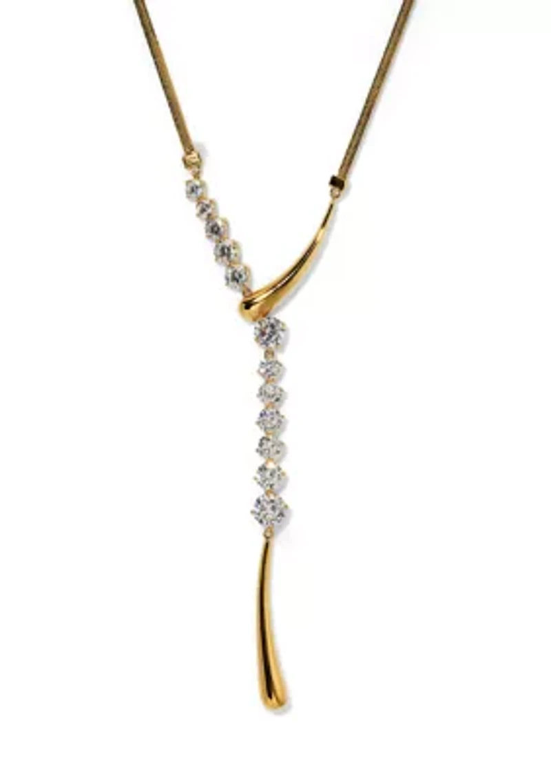 Dazzle at your next special event with this exquisite necklace from Nadri. Crafted with shimmering, lab-grown stones and an elegant Y-neck design, this piece adds a touch of glamour to any homecoming or prom ensemble. Lobster closure Polished finish Imported Product Specifications 16" + 2" Extender Material & Care Gold plated metal Clean with a soft cloth