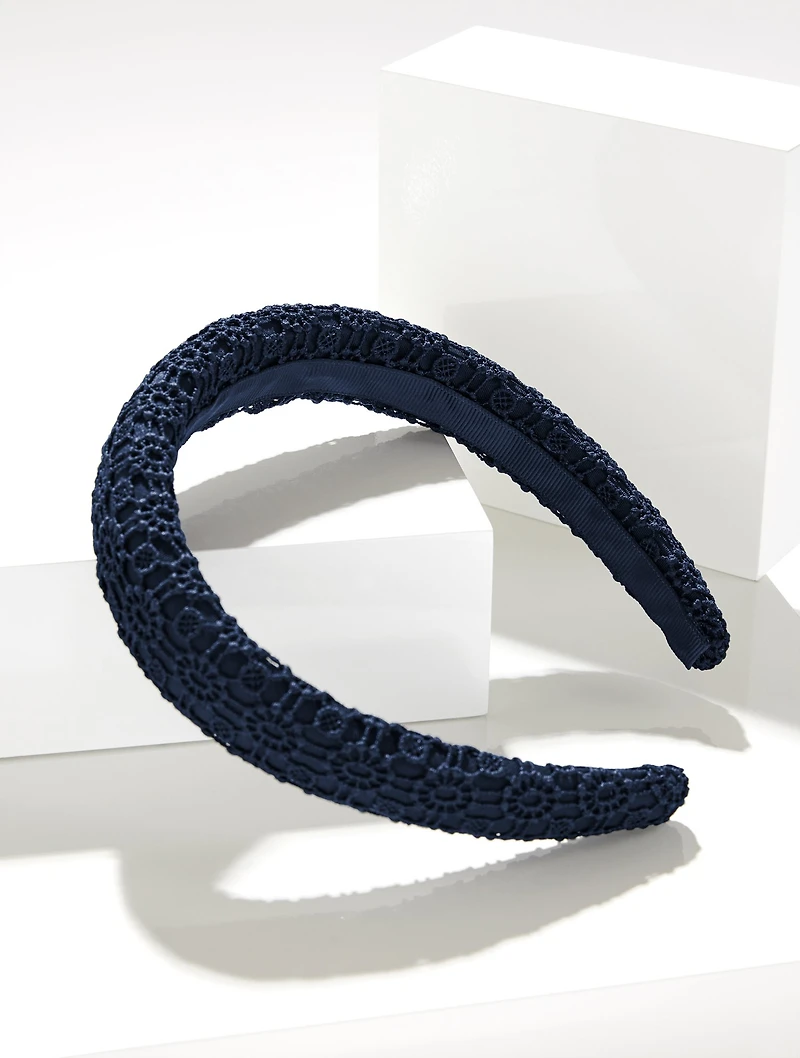 An intricate lace overlay adds a romantic touch to this chic headband. Just sweep your hair back and go.
