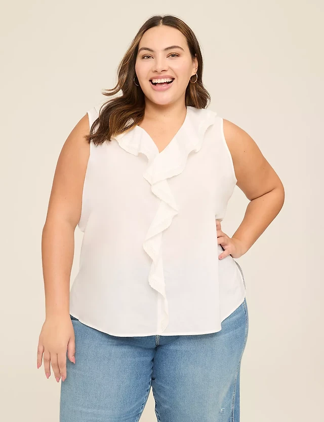 Lace Ruffle-Neck Popover Tank