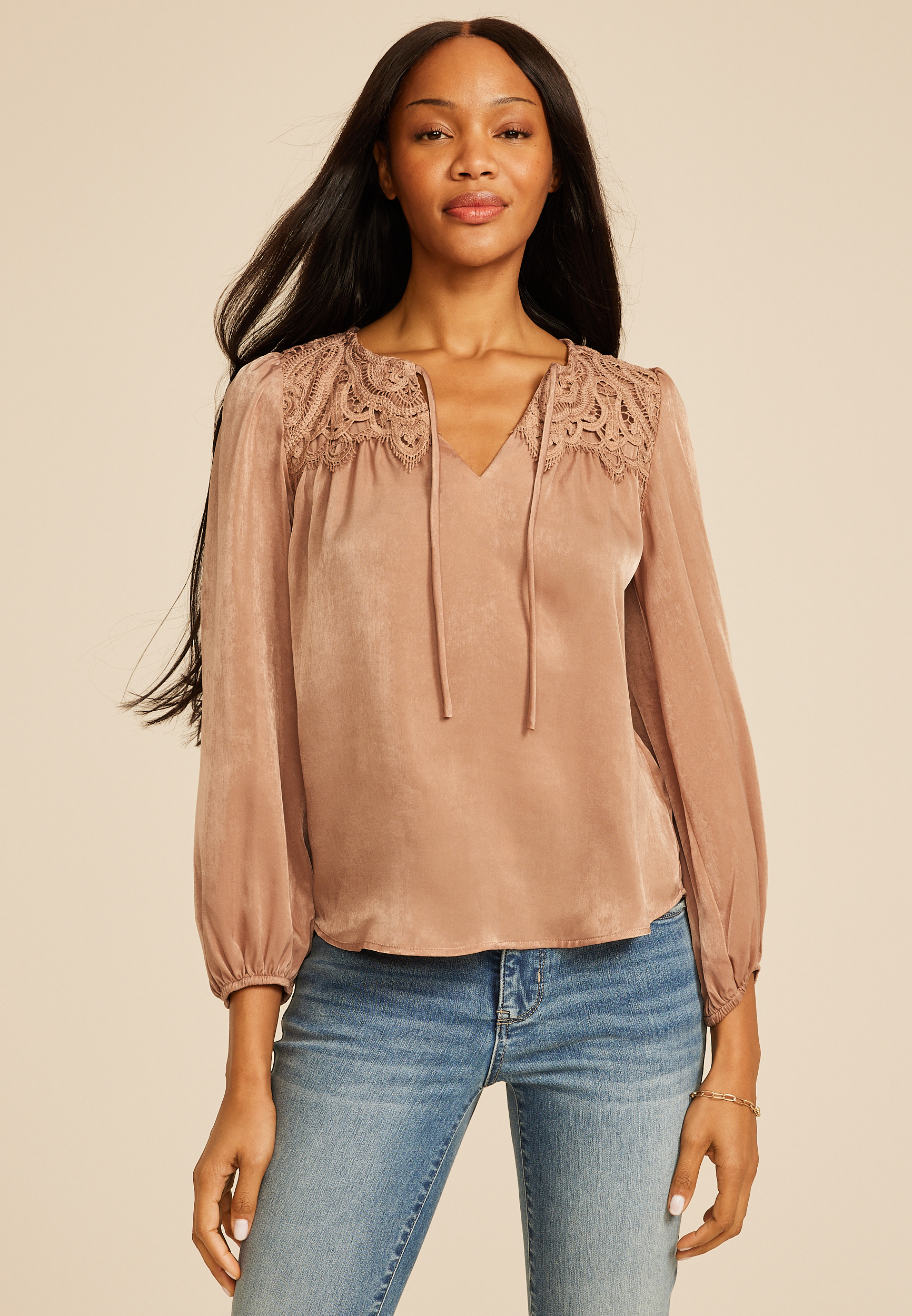 Lace Yoke Satin Peasant Blouse in Chattanooga, TN