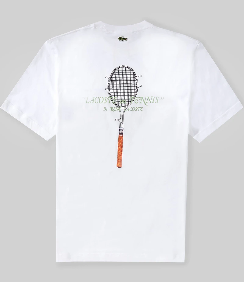 From Lacoste, this t-shirt features: Embroidery on the front Print on the back Classic fit Crew neckline Short sleeves Sewn-on embroidered crocodile below neck on back Pullover styling Organic cotton jersey Machine wash/tumble dry  Imported.