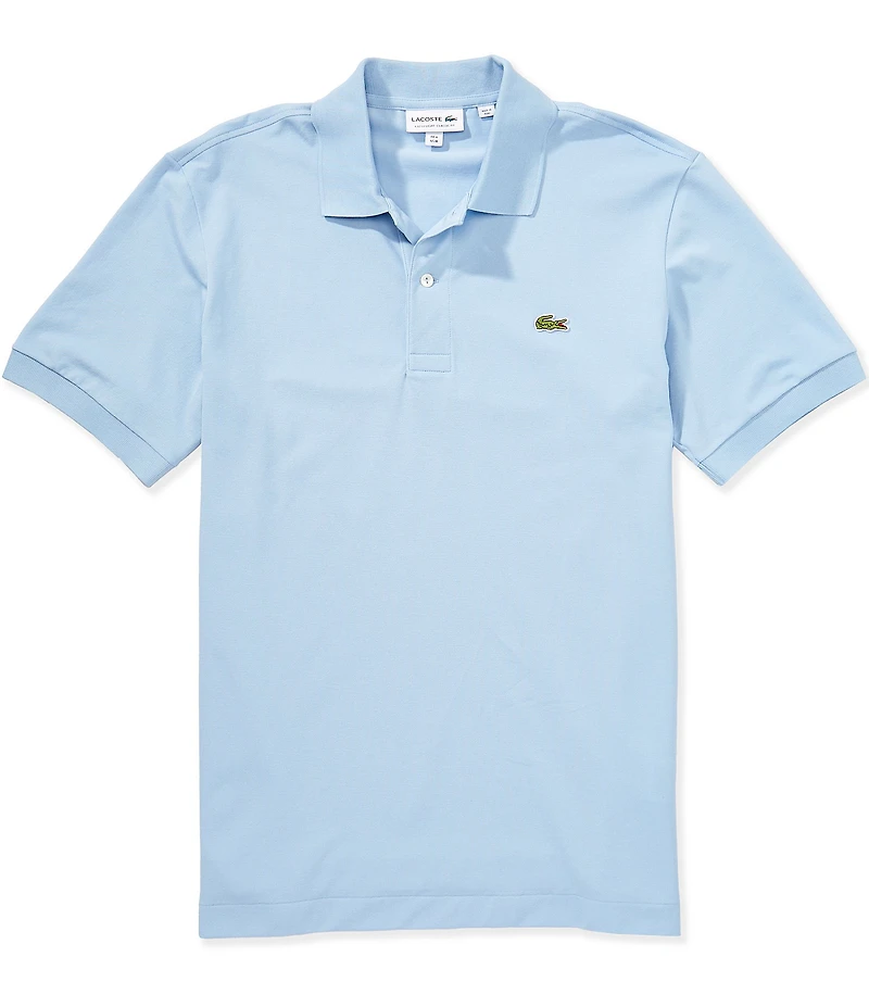 From Lacoste, this polo shirt features: Polo collar Short sleeves 2-button placket Embroidered "Croc" logo on the left side of chest Ribbed finish on collar and sleeves Pullover construction Classic fit Stretch pique fabric Cotton/polyester/elastane Machine wash/line dry Imported.
