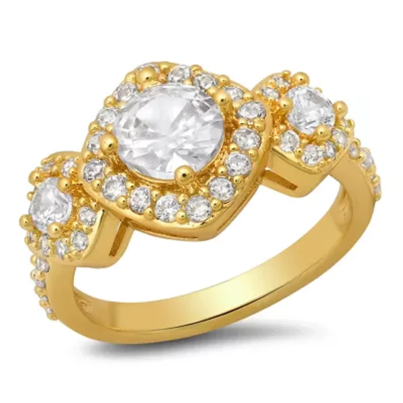 Ladies 18k gold plated brass and simulated diamonds engagement ring