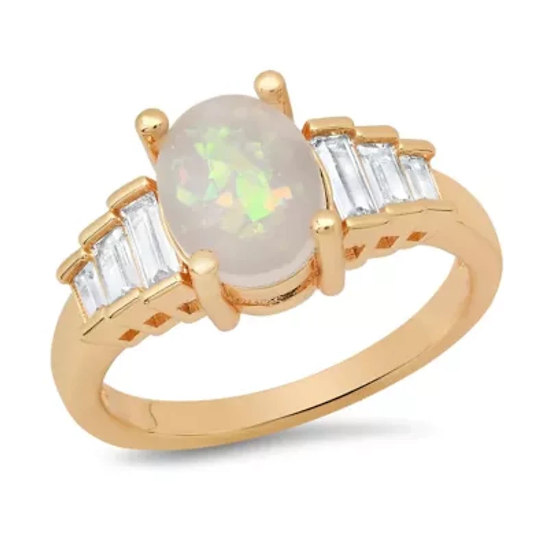 Ladies 18k gold plated brass and simulated diamonds engagement ring