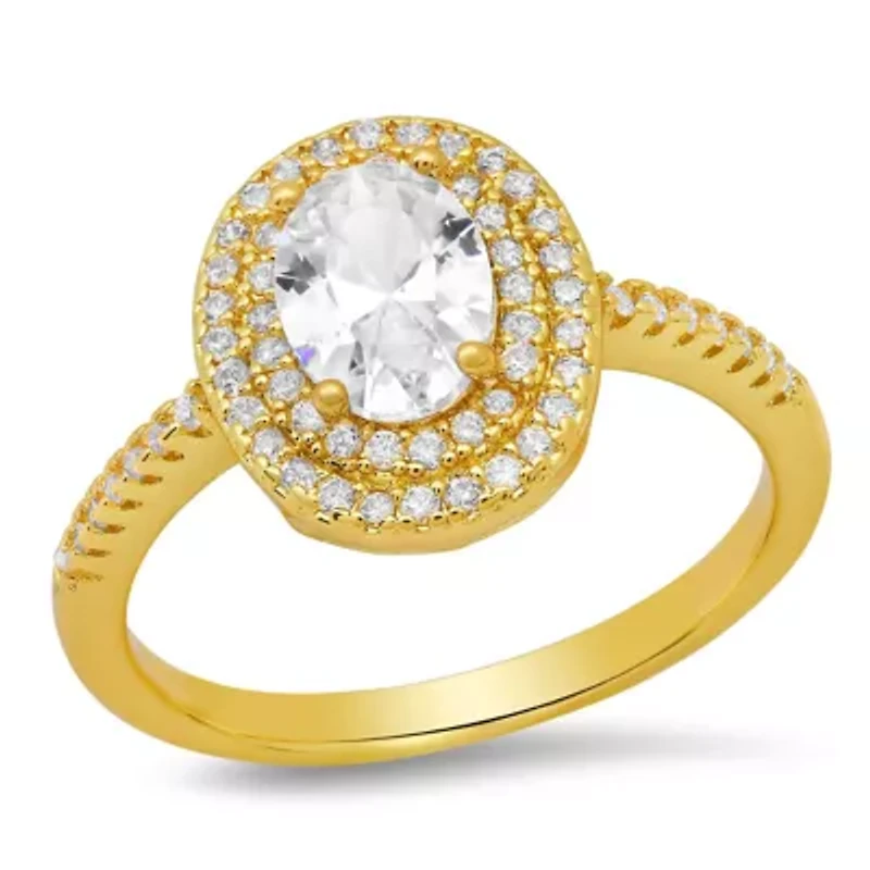 Ladies 18k gold plated brass and simulated diamonds engagement ring