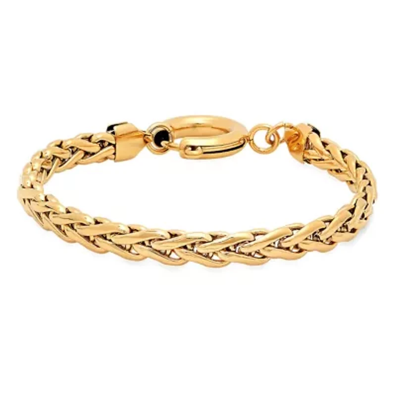Ladies 18k gold plated stainless steel wheat link bracelet Spring ring clasp Imported Product Specifications 7.5" L x 0.2"W Material & Care stainless steel Stainless steel Clean with a soft cloth.