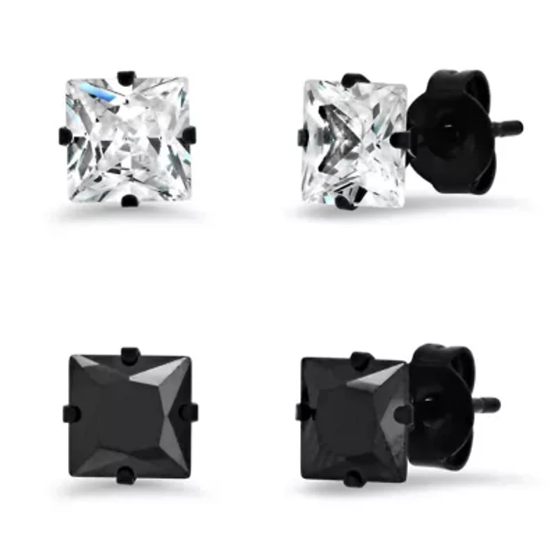 Ladies 2pc set 18k gold plated stainless steel and simulated black/white diamond stud earrings 2 Post back, Butterfly clasp Imported Product Specifications 6mm Material & Care stainless steel Stainless steel Clean with a soft cloth.