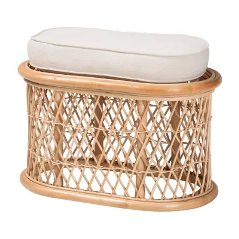 Nurture a carefree attitude in your space with the rustic serenity of the Ladonna ottoman. Made in Indonesia, this bohemian piece is handcrafted from natural rattan and is topped with a removable fabric upholstered cushion. The oval silhouette is adorned with rattan pole, creating a stunning openwork display from any angle. The Ladonna ottoman will arrive fully assembled and serves as a fantastic footstool or extra seating as needed.
