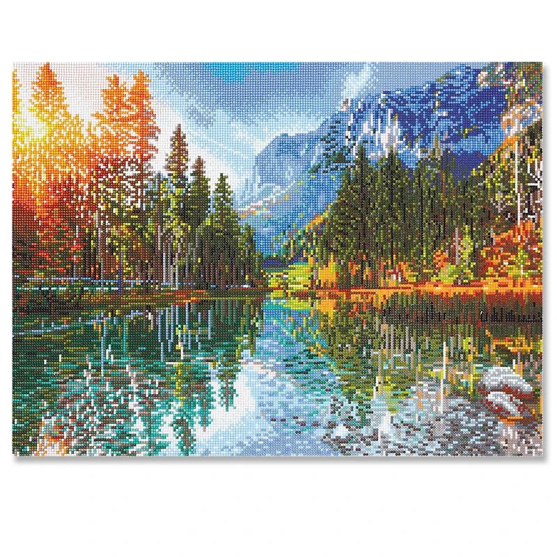 This diamond art kit features a lovely lake forest theme. Comprised of diamond art gems and a variety of tools to get you started, this kit is a must-have for any craft enthusiast.Details:Lake forest18" x 24" (45.7cm x 60.9cm)Full diamond coverageConforms to ASTM D-4236Contents:Pre-printed canvas (100% Polyester)Pre-sorted Diamond Art gems (35 colors)StylusStylus grip coverCraft trayWax caddyInstruction sheet