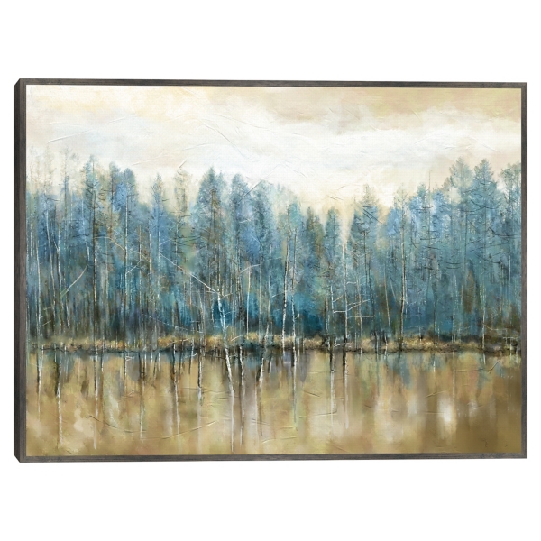 Liven up any wall in your space with our Lakeside Blues Framed Canvas Art Print. You'll love how special this print looks hanging up in your home. Framed print measures 41L x 1.5W x 31H in. Printed on stretched, polycotton blend canvas Steel frame around wrapped canvas Landscape subject Hues of blue, gray, tan, and white Weight: 7 lbs. Hangs from back-mounted hardware; sawtooth hangers included Care: Dust with a soft, dry cloth. This item is available at Kirklands.com only, not available in stores. Please note: this item cannot be shipped to APO/FPO addresses.