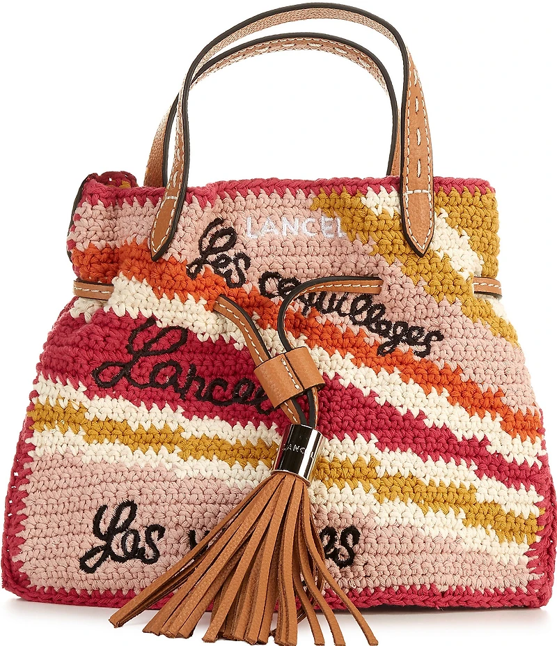 From LANCEL, this bucket bag features: Crochet cotton and grained cowhide leather Textile lining Zipped closure 2 leather handles "LANCEL " embroidered logo Approx. 7.87" L x 8.26" H x 4.33" W Imported.