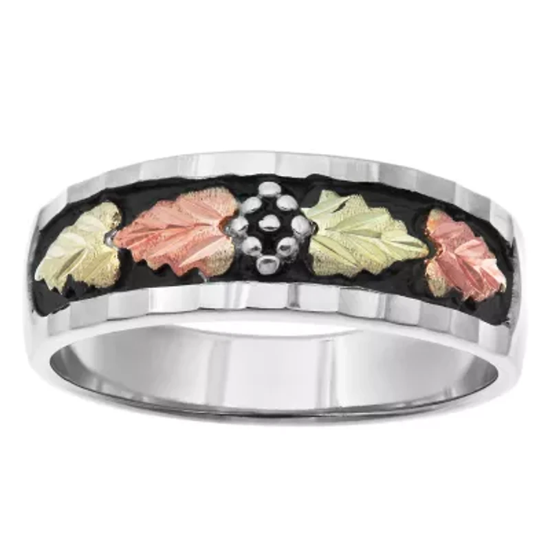 Landstroms Black Hills Gold Mens Sterling Silver Wedding Band