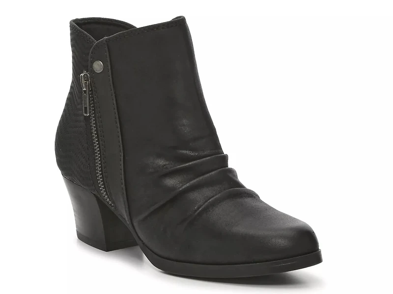 The Langley bootie from Bare Traps features a versatile design with modern comfort. A ruched instep and a exterior zipper for added edge.