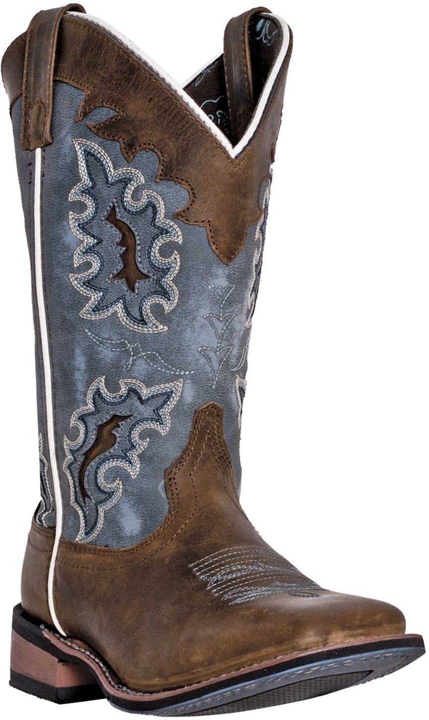 Conjure the spirit of the American West when you wear the Laredo Women's Isla Distressed Leather Western Boots. Featuring 11-inch denim shafts and Stockman heels, these stylish boots are designed with cowboy-approved outsoles for reliable traction and cushioned insoles for a soft step. The broad, squared toes add an authentic appearance to help you stand out from the crowd.
