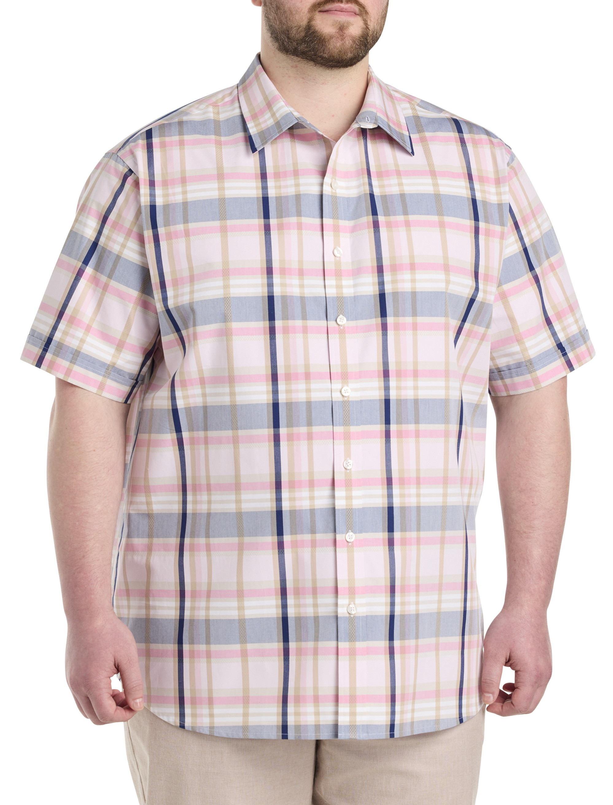 Work to weekend, this plaid button-down shirt in soft, lightweight and more environmentally-friendly cotton dobby is an essential you can wear any day of the week. It's cut to layer comfortably over a T-shirt for a more casual look and is fresh for the season in a new color palette. Designed right here at DXL with precise proportions and an ideal fit for Big and Tall guys, it's stylish, versatile and allows for the freedom to move without restriction. Wear it untucked with shorts, jeans or twills for that effortlessly, put-together look.