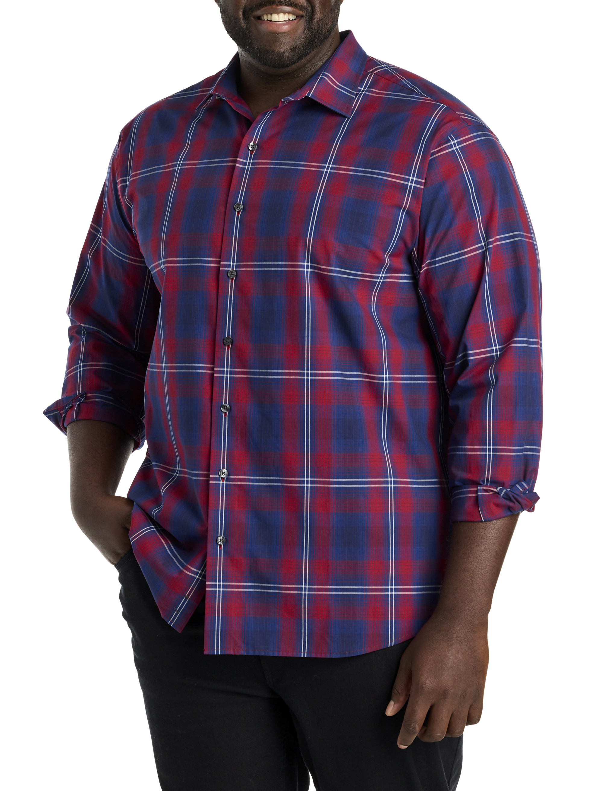 Work to weekend, this plaid button-down shirt in soft cotton is an essential you can wear any day of the week. Go casual and wear it with jeans or pair it with dressier pants for work. Designed at DXL with proper proportions that fit and flatter Big and Tall guys, it's cut to layer comfortably over a T-shirt and allows for the freedom to move without restriction.