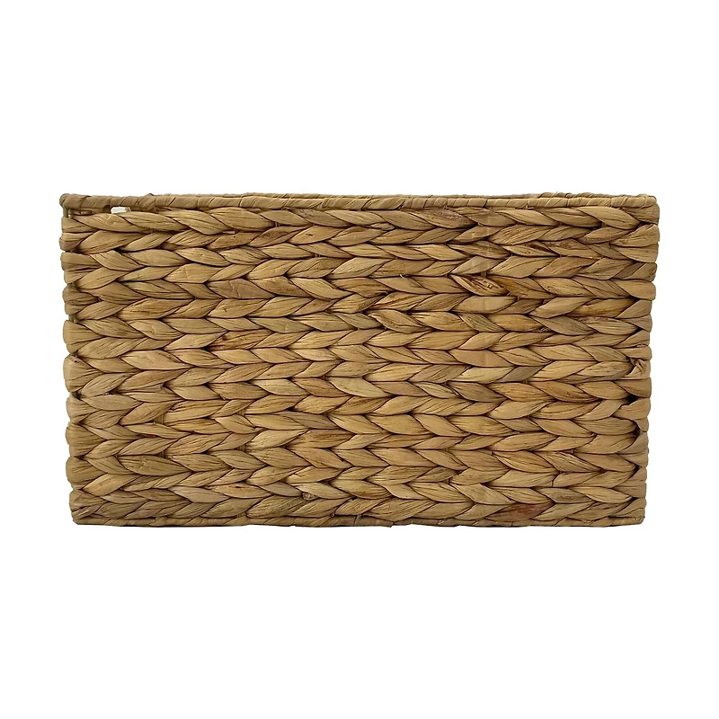 Fill this basket with beautiful spring flowers, faux fruit, or small towels. Place it on your coffee table for a decorative touch or use it as a storage basket and keep it neatly tucked away in your bathroom or linen closet.Details:Tan17" x 12" x 9.5" (43.18cm x 30.48cm x 24.13cm)Water hyacinth and ironFor indoor use