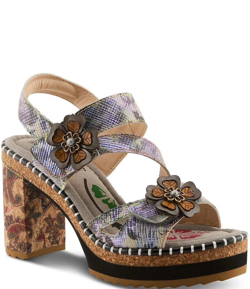 L'ARTISTE Escapartist Hand-Painted Leather Appliqued Platform Block Heel Sandals in Chattanooga, TN