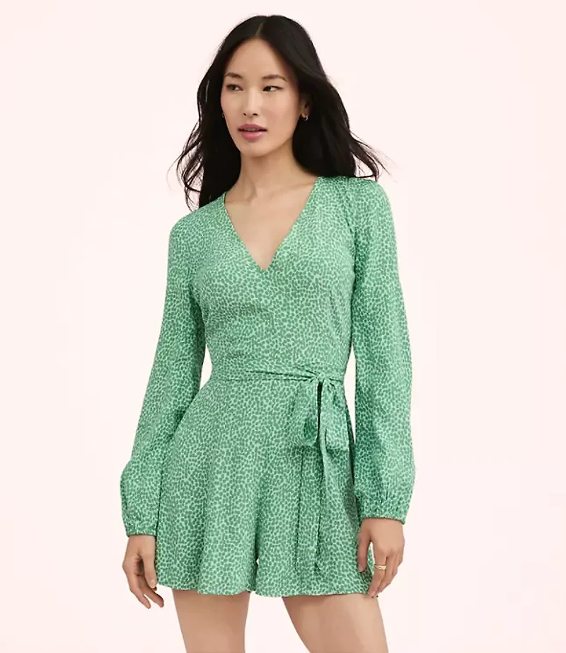 Introducing Lately: styles that fit the vibe for every event on your calendar. Only at LOFT. With shorter and more fitted silhouettes, playful cut - outs and eye - catching details, these dresses and match sets do the most ( in the best way ). Make the reservation. Toast the milestone. Book the trip. RSVP yes When the outfits this cute, plans follow. V - neck. Long sleeves with elasticized cuffs. Adjustable waist tie. Back zip, Imported:, Length: 32 1/2"from shoulder to hem, measured from a size 6, Fabrication: 100% Rayon, Garment Care: Machine Washable Loft Lately Dotted Long Sleeve Romper Size 0 Green Women's by Loft Size Regular - 0 Green Women's Rompers, & Jumpsuits Dresses Dressy Occasion 100% Rayon Machine Washable