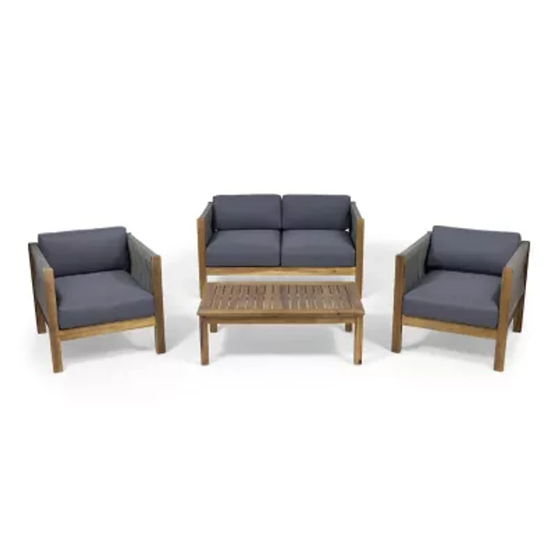 Entertaining your guests will be smooth sailing with our delightful four-seater chat set, making your outdoor space your new favorite place to hang out for the summer. This charming set brings together stunning, hand-crafted rattan rope weave with the smooth material of rich acacia wood to create a breezy and comfortable space for your home. With plush water-resistant cushions, sturdy, solid frames, and beautifully textured design, this set will have no problem blending into your outdoor décor with its modern style and incredible durability.