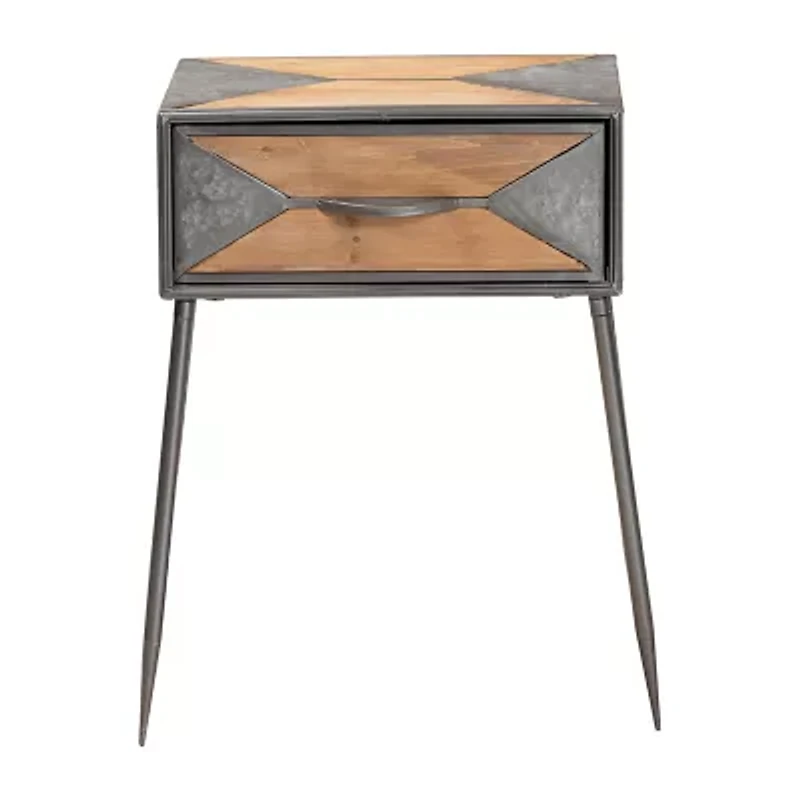 A contemporary take on industrial design, the laurel nightstand enriches any space. Made in china, the laurel is comprised of an antique grey finished metal frame combined with whitewashed oak finished wood and further enhanced with sleek, angular accents. One spacious drawer provides ample storage for all your bedside essentials. Requiring assembly, the drawer features a vintage style handle for easy access. An eye-catching accent that transforms any space, the laurel nightstand is an exceptional addition to the modern bedroom. Dimensions: 25.2" high x 17.7" wide x 14.2" deep; drawer: 6.1" high x 16.5" wide x 13.4" deep; legs: 17.3" high.