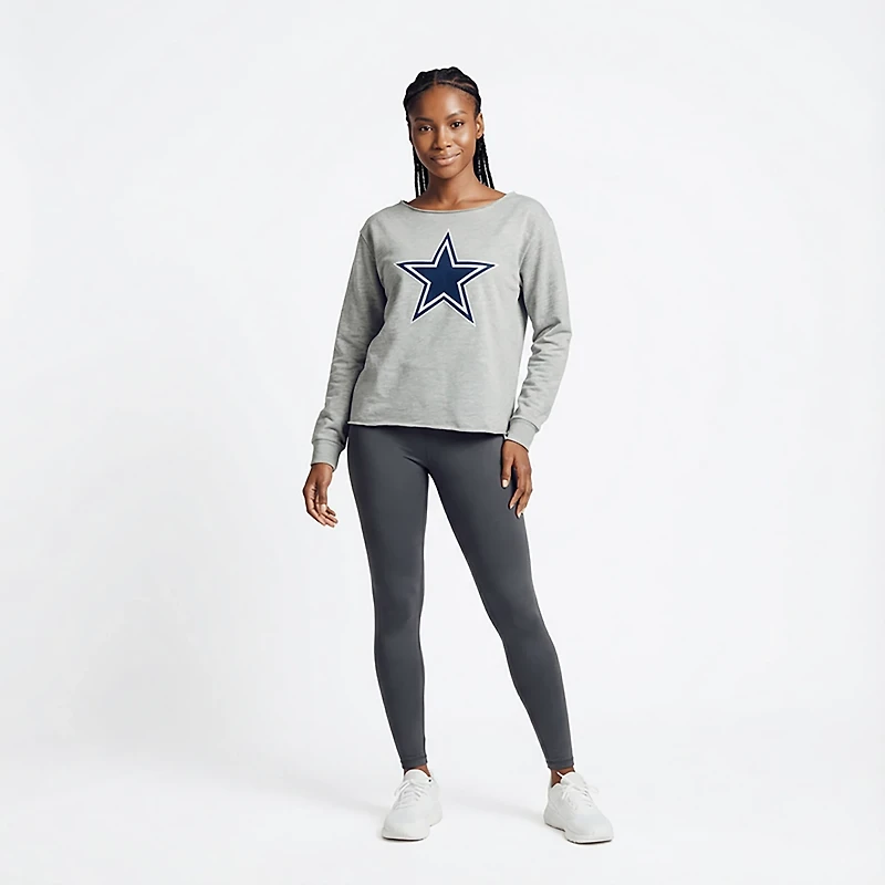Bring trendy style to gameday with this Lauren James Women's Dallas Cowboys Off-Shoulder Sweat Long Sleeve Top. It is made of 60% cotton and 40% poly French terry for a soft and comfortable feel, and the off-shoulder design delivers a trendy style. Features a Dallas Cowboys logo on the chest.