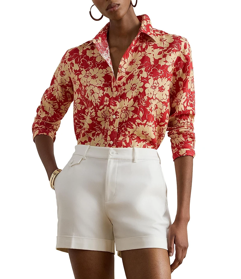 From Lauren Ralph Lauren, this shirt features: Point collar Long roll-tab sleeves Floral print Relaxed easy fit Button-front closure Approx. 29" length Linen Machine wash Imported.