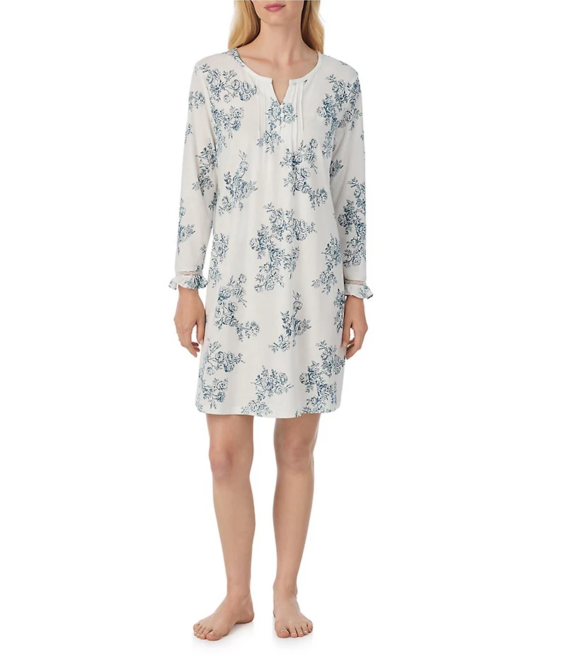 Lauren Ralph Lauren Floral Print 3/4 Sleeve Split Neck Knit Nightgown
