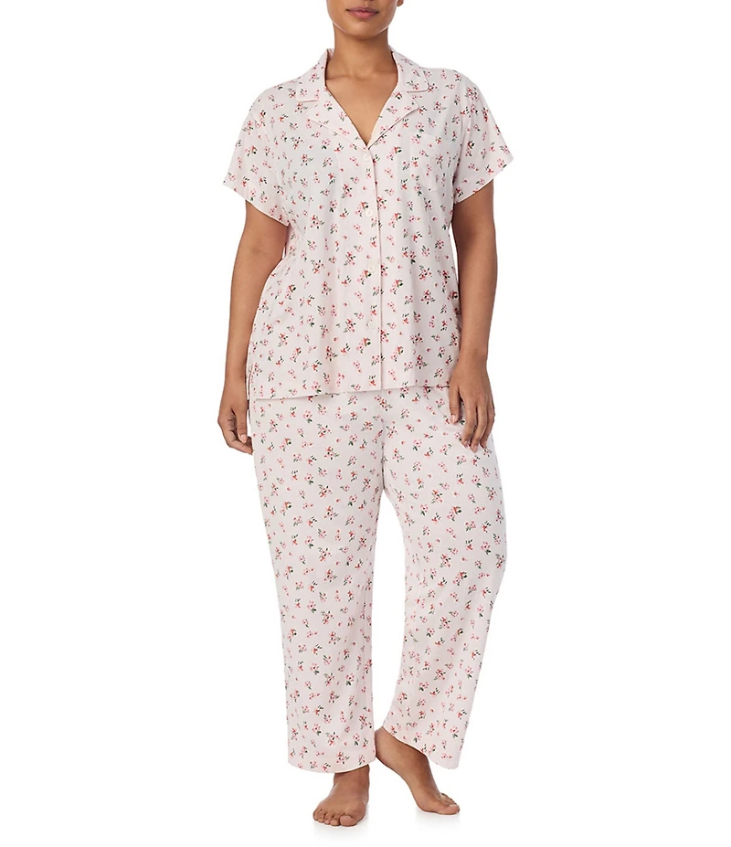 Lauren Ralph Lauren Plus Size Pink Bouquet Print Short Sleeve Notch Collar Knit Pajama Set