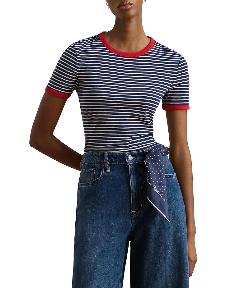 Lauren Ralph Lauren Stretch Rib Knit Striped Cotton Tee