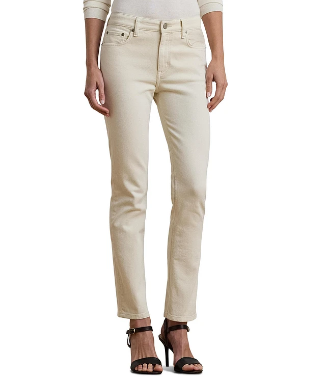 Lauren Ralph Lauren Twill Denim Mid-Rise Straight Ankle Jeans