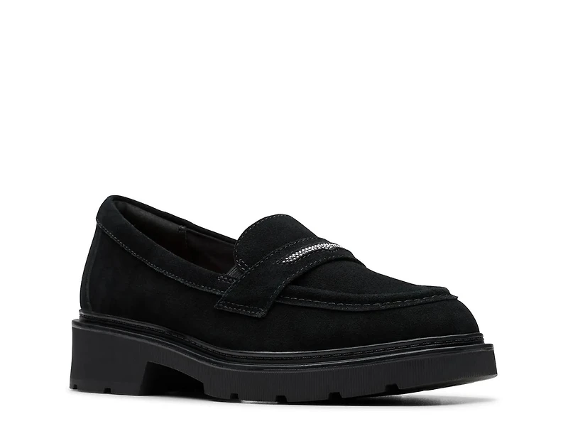 The Clarks Lauryl Step loafer is fashioned with embellished penny strap across the vamp for a distinguished appeal. The soft suede upper offers a contemporary touch to this slip-on designed with a Ultimate Comfort footbed to provide excellent cushioning support.