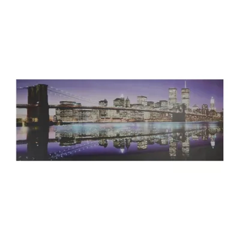 LED Lighted Famous New York City Brooklyn Bridge Skyline Canvas Wall Art 15.75'' x 39.25''