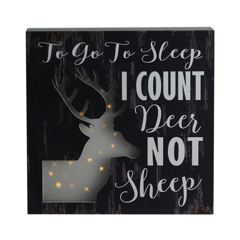 Transport yourself to the country side with this beautiful piece that features a lighted deer silhouette with the phrase "To Go to Sleep I Count Deer Not Sheep".