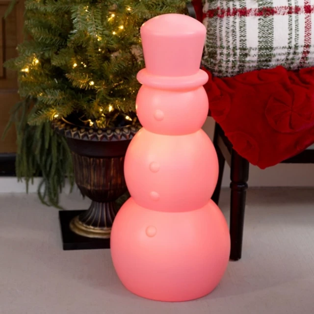 LED Pink Snowman Blow Mold Statue