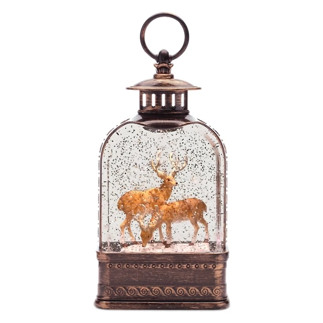 11.5" LED Winter Scene with Deer Snow Globe Lantern