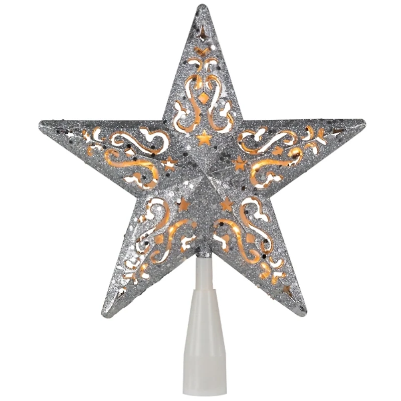 Top off your Christmas tree with a beautiful sparkle and warm glow! The LED Silver Glitter Star Christmas Tree Topper will bring enchanting character to your winter wonderland. Topper measures 8.5L x 2W x 8.5H in. Crafted of plastic Star shaped with intricate cutouts LED design Silver glitter finish Plug-in cord Care: Dust with a soft, dry cloth. This item is available at Kirklands.com only, not available in stores. Please note: this item cannot be shipped to APO/FPO addresses.