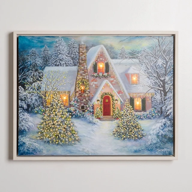Snowy Christmas House 36" x 24" Canvas Wall Art