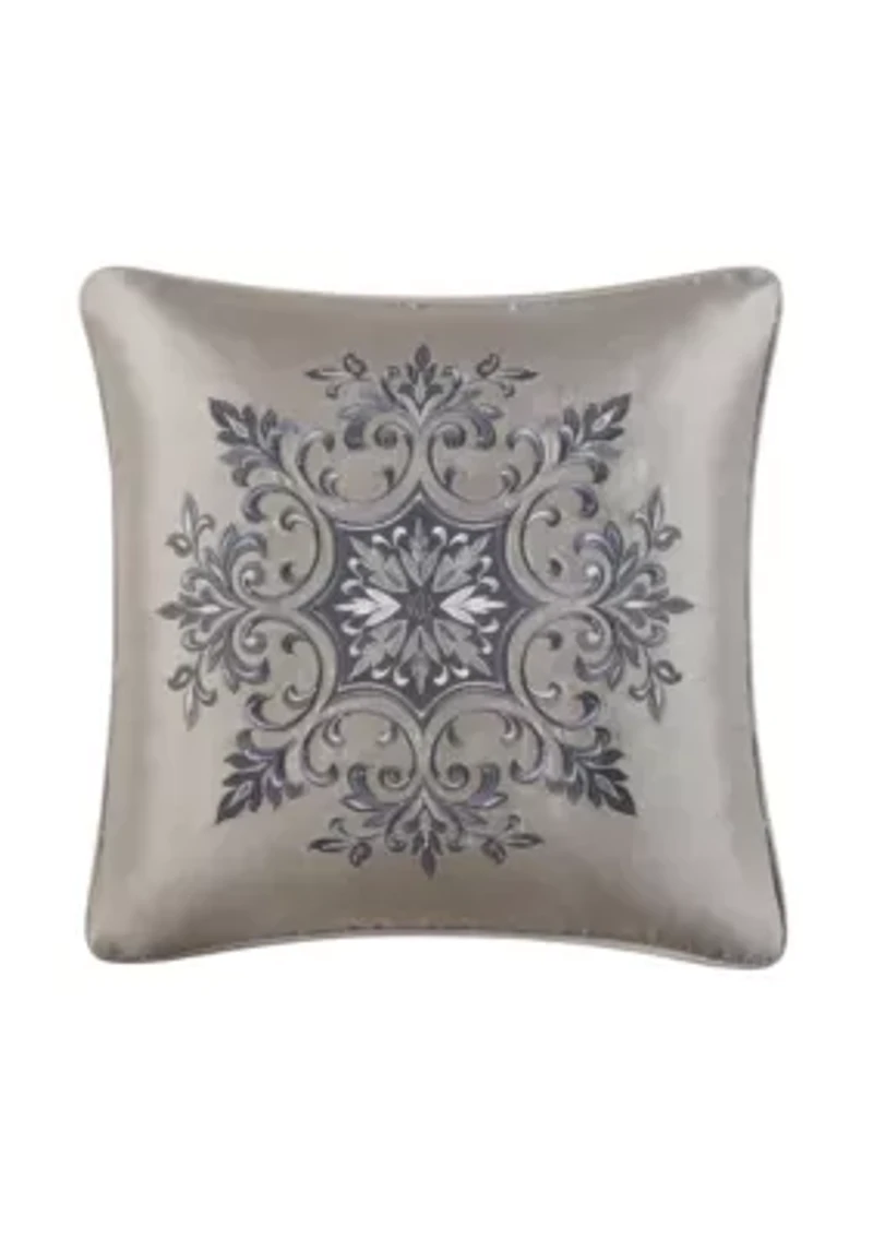 Classic, bold, and sophisticated, the Legend 18" Decorative Throw Pillow is embroidered with a stunning medallion design. Paired with a beautiful taupe base fabric and completely finished with a satin piping for a tailored finish. Pair this pillow with the Legend bedding set by J. Queen New York to reshape the landscape of your bedding. • 18"x18" 1 piece(s) included CN Imported Product Specifications 18 -in. x 18 -in Material & Care Polyester Fill Polyester Dry clean only