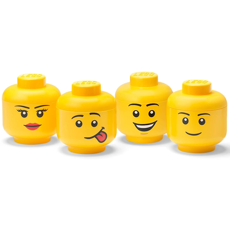 This mini storage head set features four classic LEGO® faces! Lift the top off and use the minifigure-inspired modeled head to collect extra LEGO bricks, tiny collectibles, office or desk supplies and more! This storage container adds a fun and playful vibe to your space no matter your age and, in true LEGO fashion, can be stacked on top of one another to make a tower of LEGO storage heads.Details:Includes assorted mini storage heads3" x 3" x 4" (10cm x 10cm x 11cm) approximate overall size eachLift-off lidStackablePolypropyleneLEGO bricks sold separatelyFor ages 3 and upContents:1 silly storage head1 boy storage head1 girl storage head1 smile storage head