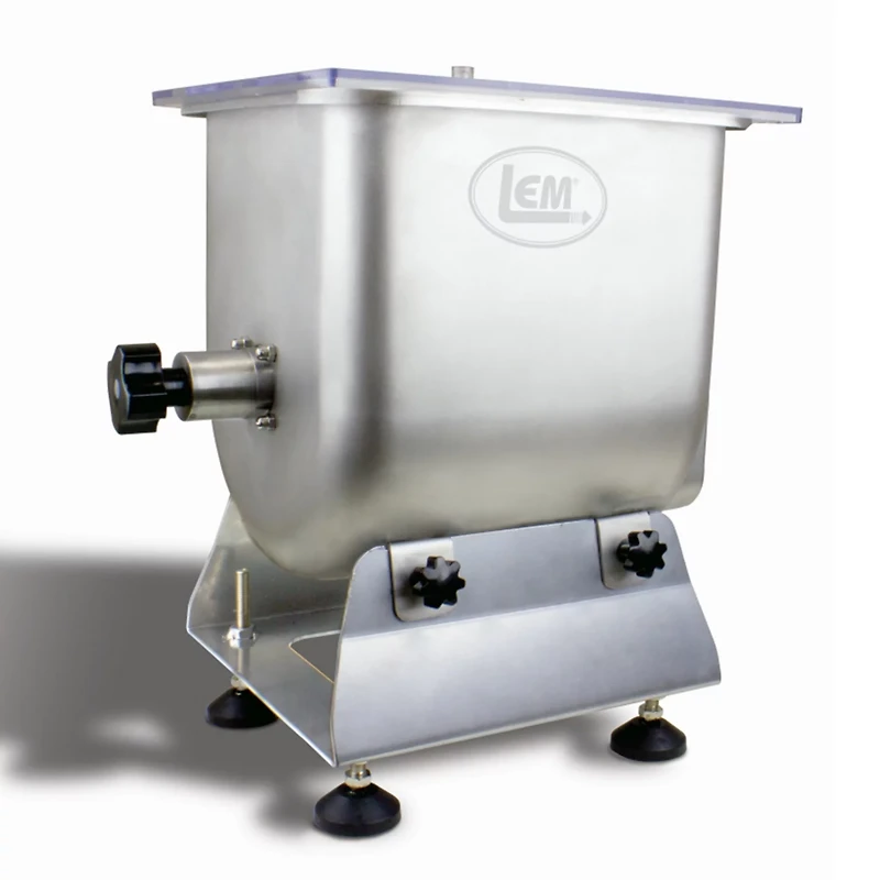 Thoroughly mix your meat with the LEM Big Bite Fixed Position 50 lb Meat Mixer. Constructed with rust-resistant stainless steel, this meat mixer is made for long-term use. The roller bearings in the gear box allow the paddles to deliver consistent mixing performance, while the clear acrylic cover helps keep the meat contained. The detachable meat tub offers easy cleaning.